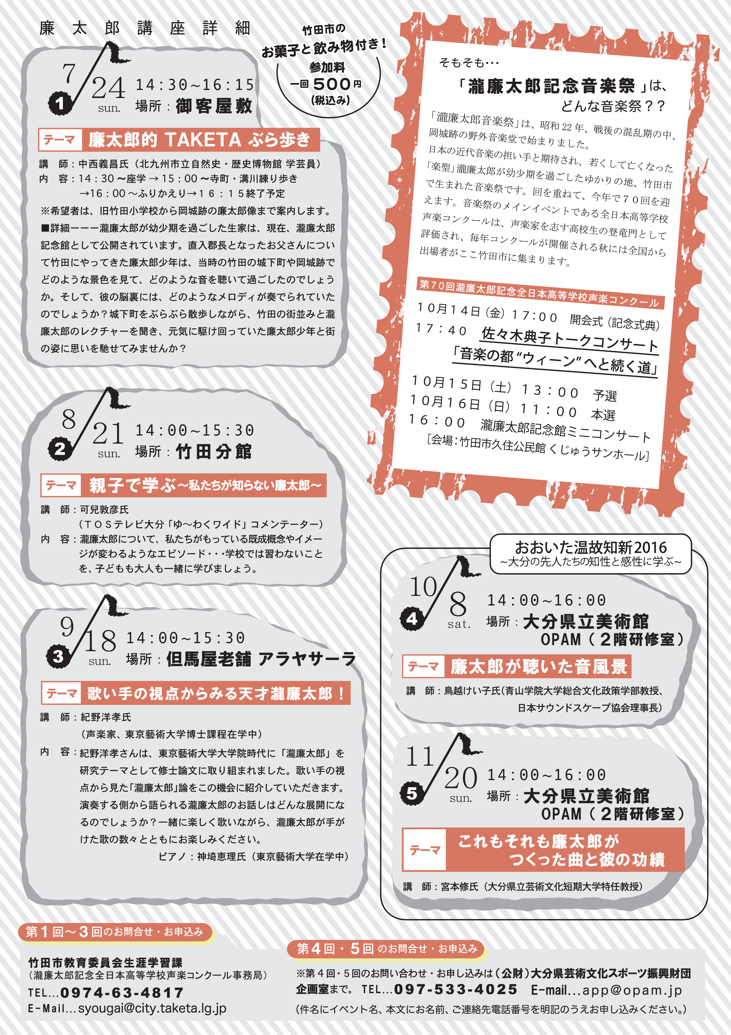 2.初めての廉太郎講座/瀧廉太郎記念全日本高等学校声楽コンクール[7/24、8/21他]