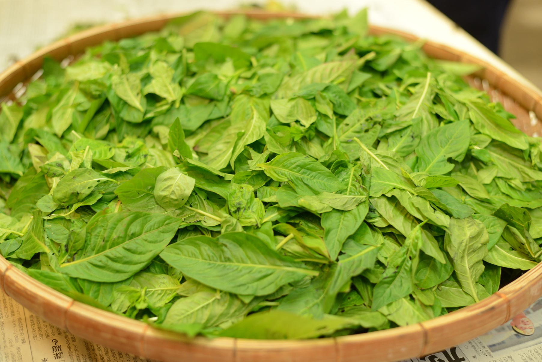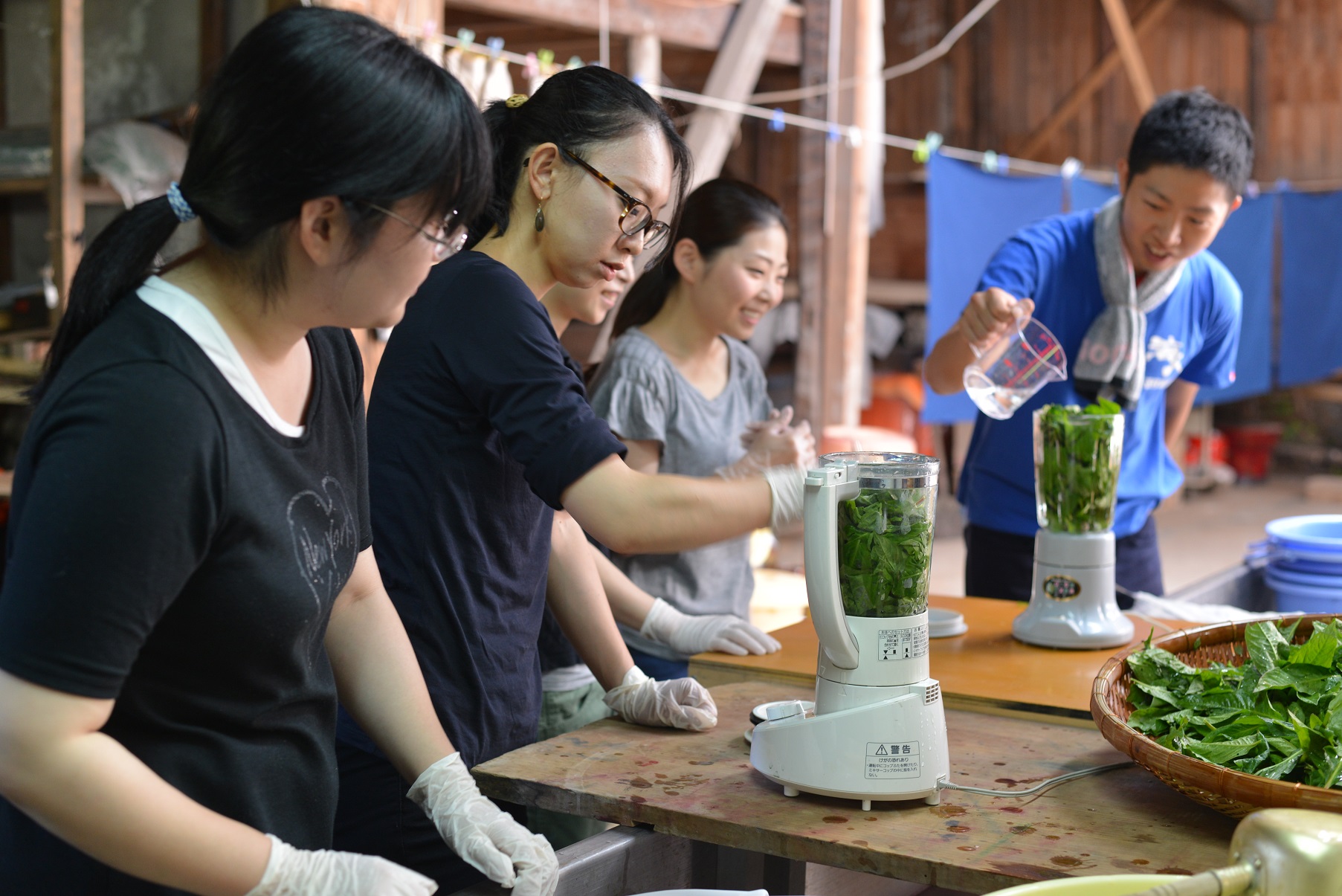 「竹田有機紅藍」の生葉を使った藍染め体験です