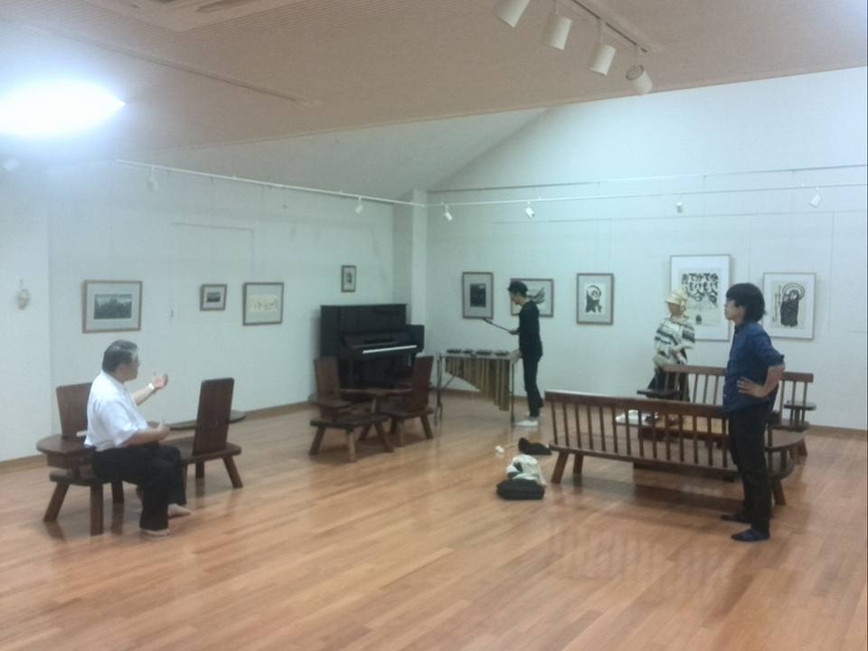 夜は【竹】のモチーフとなる瀧廉太郎のピアノ曲『メヌエット』の録音に、但馬屋老舗本店2階にある「山頭火 秋山巌版画館」へ。京都ともつながりがある但馬屋老舗板井社長と京都のお話をしばししてからのスタート。