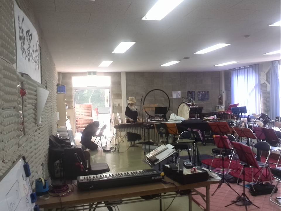 顧問の先生と、10代のころ吹奏楽部だったというmama!milk生駒さんと話が盛り上がります。専用の部室がある器楽部だなんてすてきです!コンクール目前というお忙しい時期にお借りしたのですが、ご近所に迷惑がかからないようクーラーがついていない部室で、半ば熱中症になりながらも練習に励んでいる、といいます。器楽部の隣にはプール、奥には全国的にも有名な山岳部のボルダリングの大きな練習設備が。体育会系の部員の声がまぶしかったです。