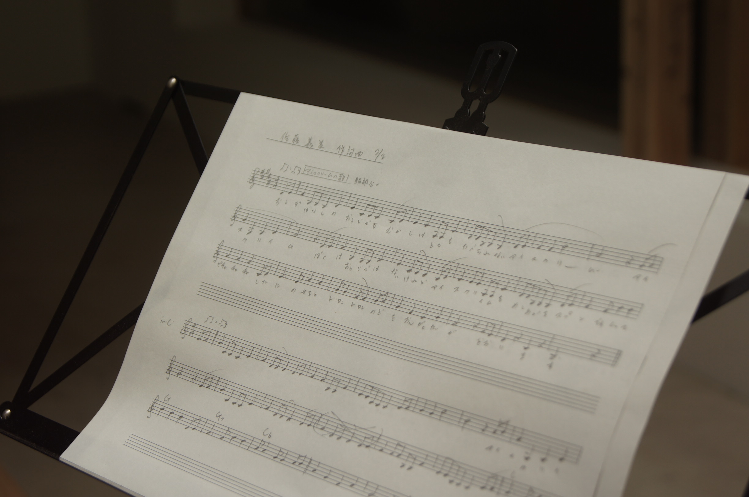 「【水】がテーマの楽曲に、口笛できる方に録音させていただきたい」。mama!milkのおふたりからリクエストをいただいて事務局が真っ先に思い浮かべたのは、制作拠点がある大分県竹田市城下町の中心部に縫製工場をもつ「竹田被服」大塚さん。録音のお願いに快諾してくださり、お忙しい中、口笛録音に協力してくださいました。曲は、竹田市生まれの童謡作詞家、佐藤義美による「グッドバイ」「犬のおまわりさん」。大塚さんからのリクエストで「思い出のアルバム」も披露してくださり録音しました。大塚さんの朗らかな口笛が制作拠点に響きました。